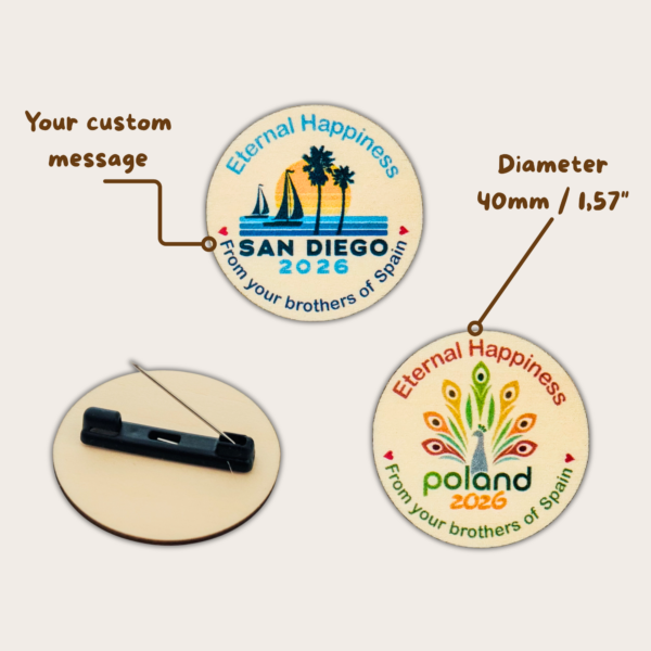Estas chapas de madera han sido creadas como un recuerdo especial de las Asambleas Internacionales de los Testigos de Jehová 2026, cuyo tema bíblico “Felices para siempre” nos invita a reflexionar sobre la esperanza y la promesa de un futuro lleno de verdadera felicidad.