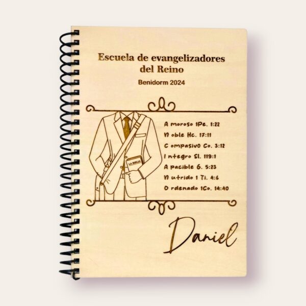 Sumérgete en la distinción y autenticidad con nuestra exquisita libreta de 80 páginas, con tapas de madera grabadas con láser. Este tesoro de elegancia está diseñado especialmente para precursores regulares y los ancianos en la congregación.